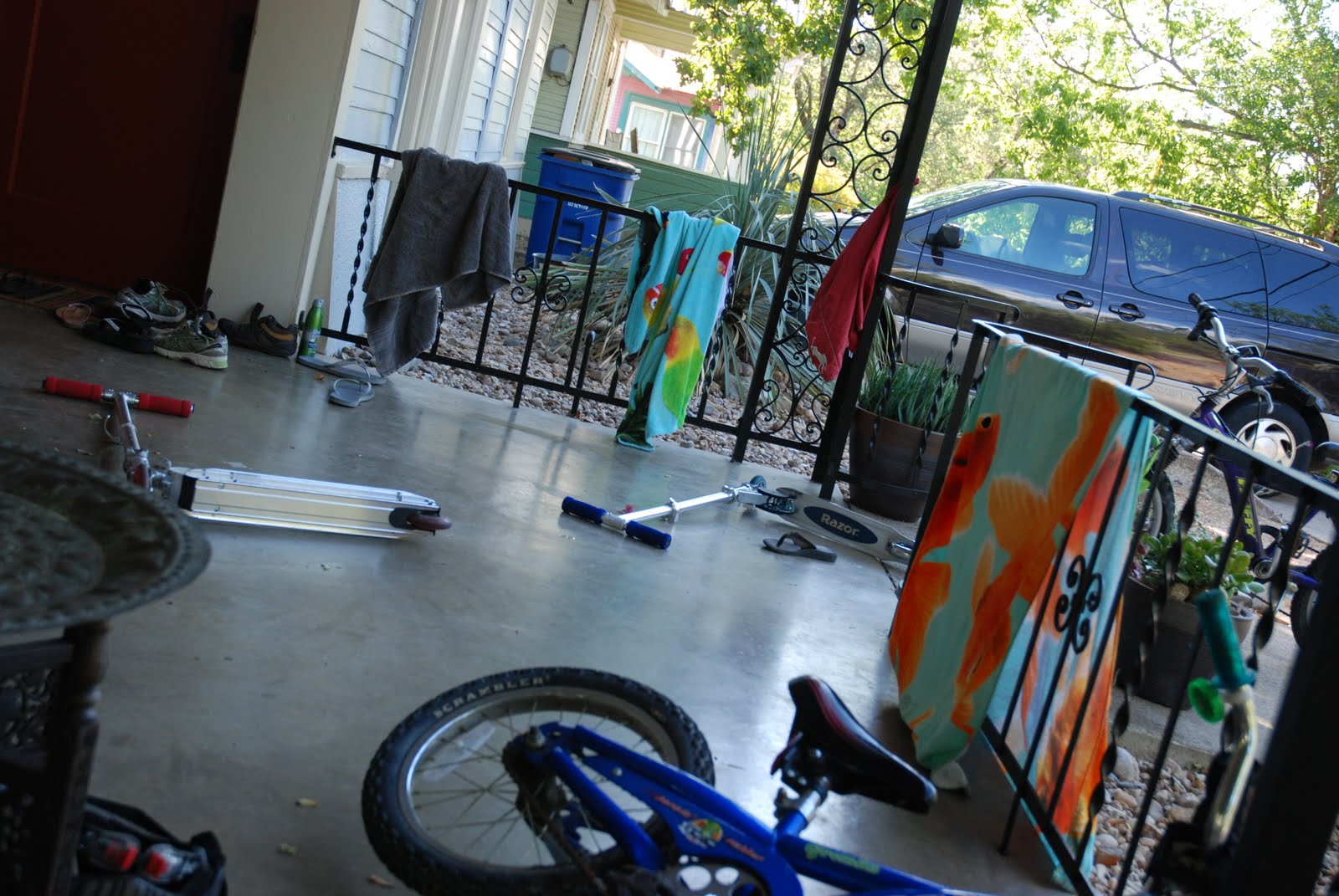 Swim team -- our girl swam like a champ six days a week for the Ramsey Red Fish. She won 1st or 2nd place in every race. While she practiced I got to sit in the shade, sipping ice tea, sampling breakfast tacos with one of my best and most hilarious friends K.
